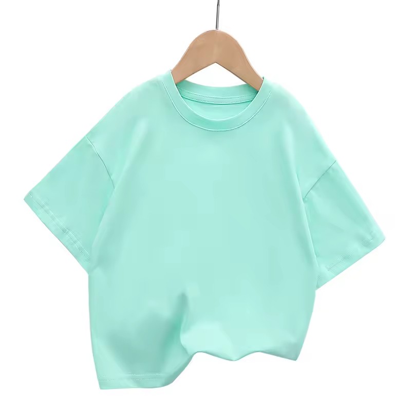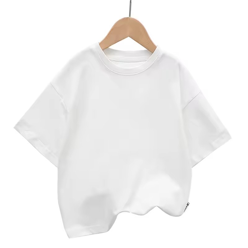 2025 High Quality Custom Logo Child Kids Dropped Shoulders Short Sleeve 100% Pure Cotton Boys Oversize T-Shirts for Girl Toddler