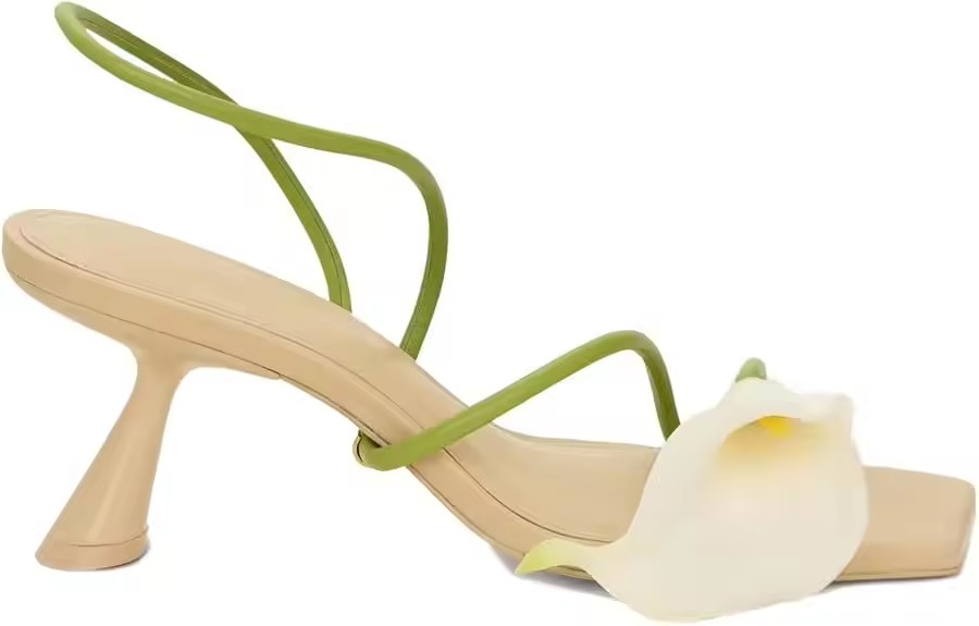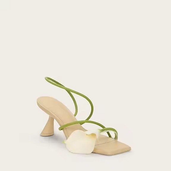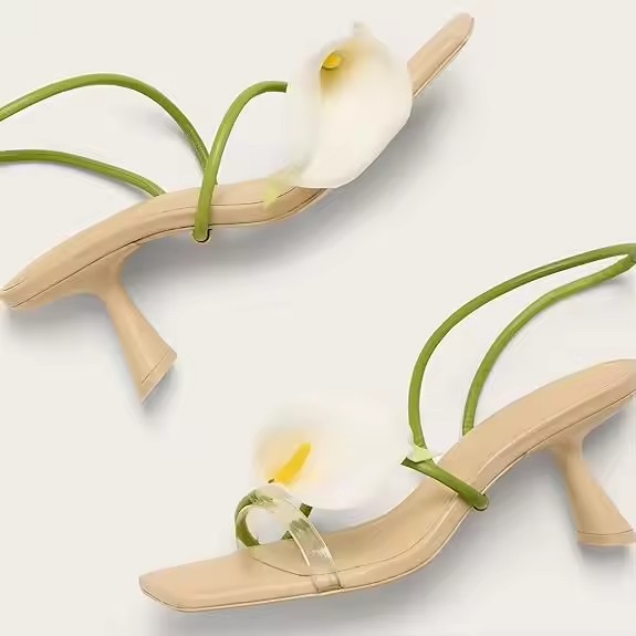 2025 Wholesale Kitten Low Heels Open Square Toe Strappy Floral Spring Summer Women's Heeled Sandals