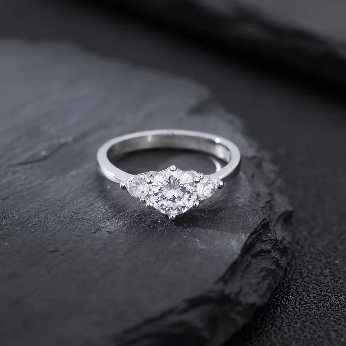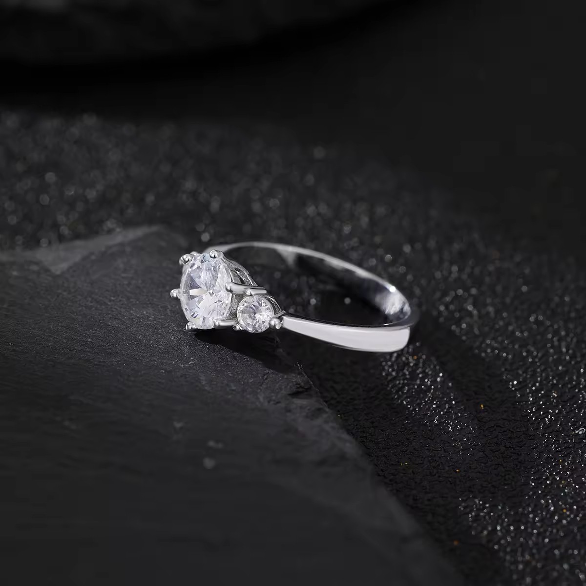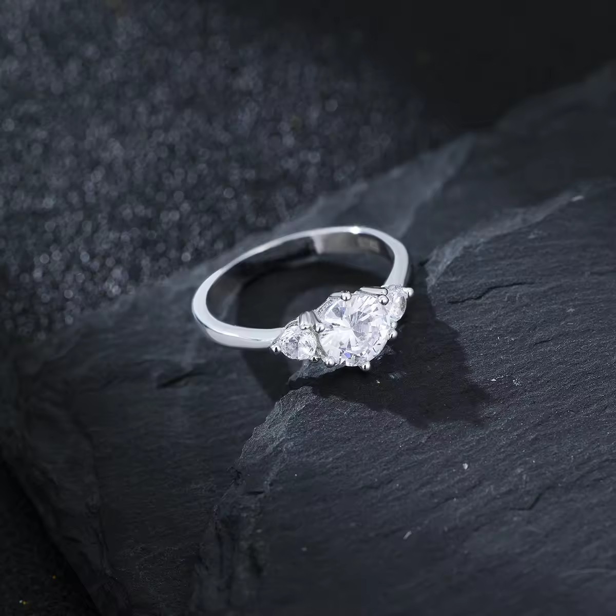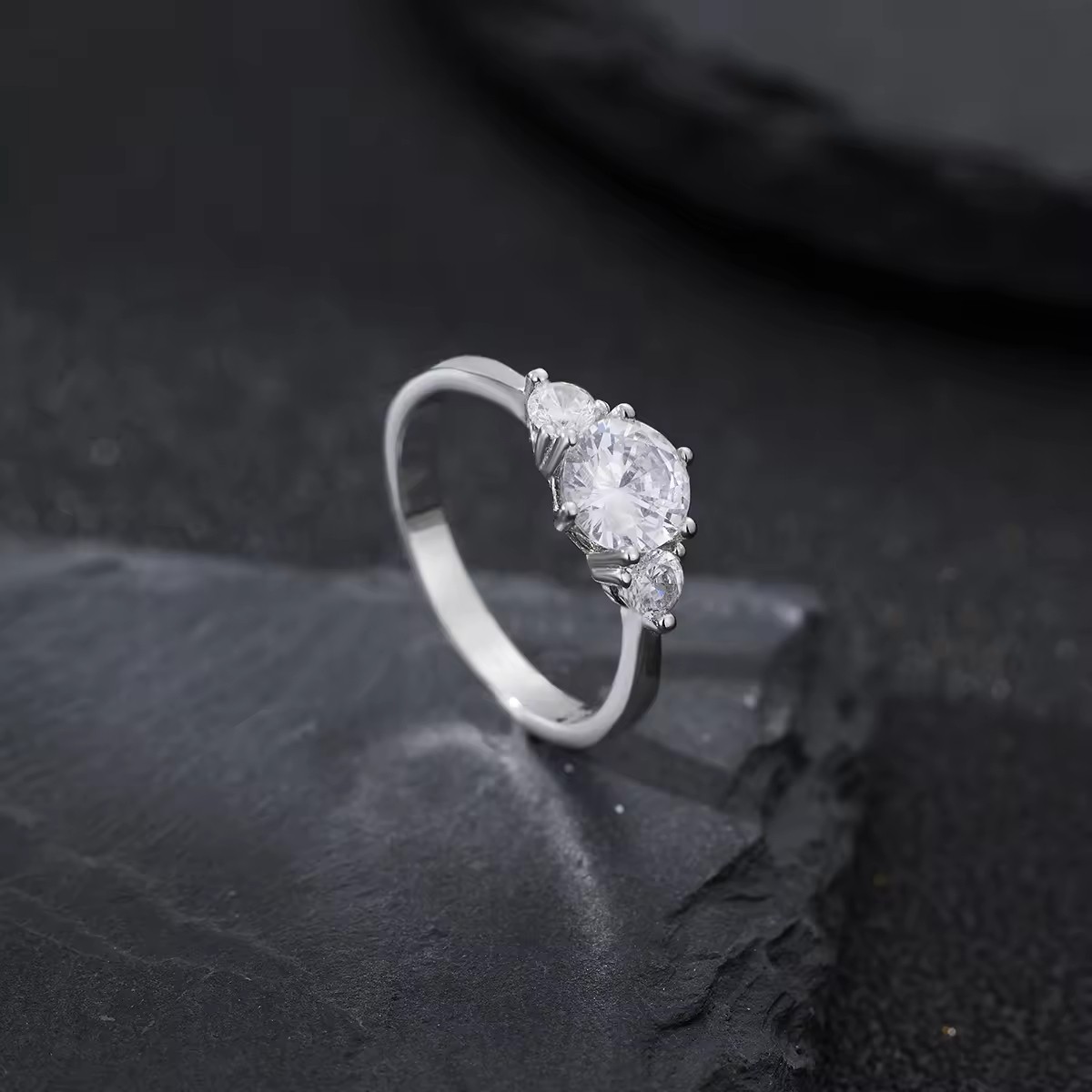 925 Sterling Silver CZ Custom Bulk Jewelry Engagement Wedding Lab Grown Diamond Three Stones Mossanite Promise Rings for Women