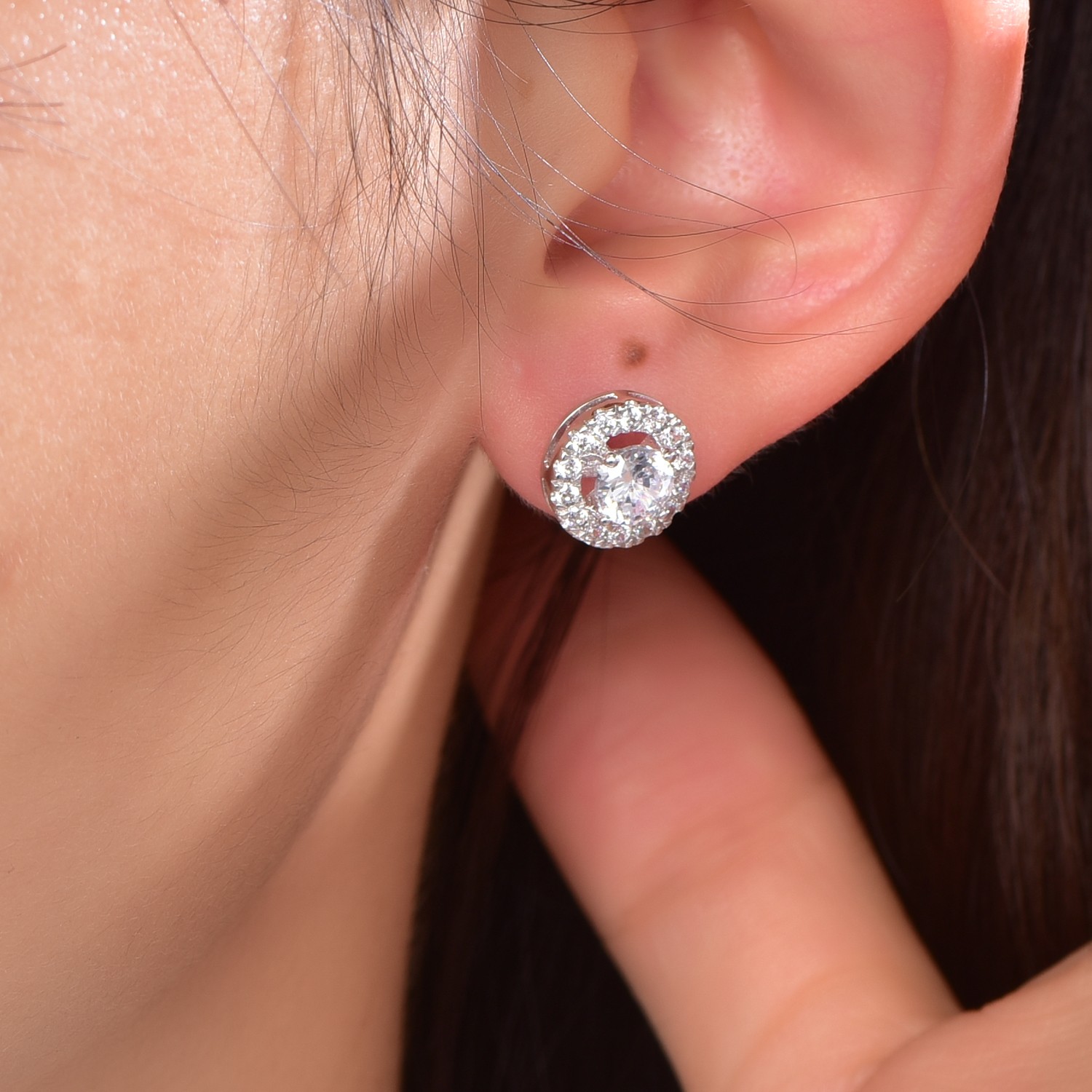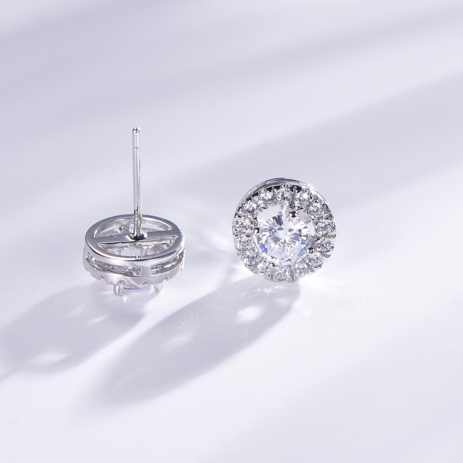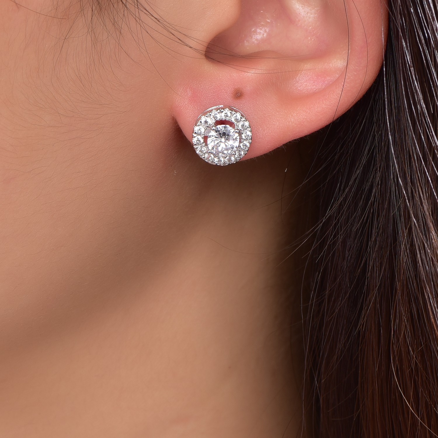 Beautiful 14k white gold earrings with a girl's high-end jewelry halo