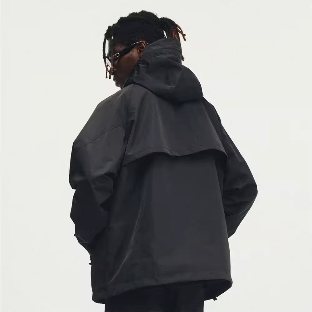 Custom Clothing Manufacturers High Quality Pullover Wind Breaker Track Jacket Hooded Waterproof Black Windbreaker Jacket for Men
