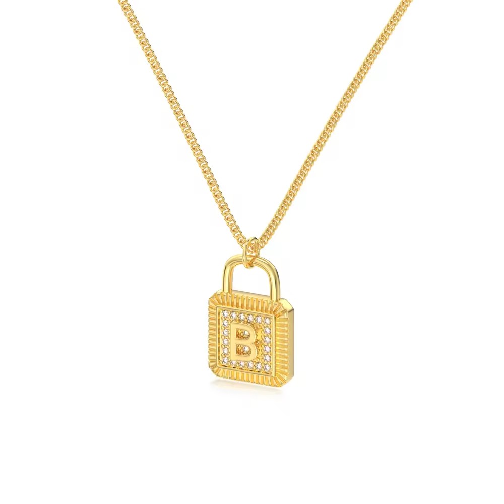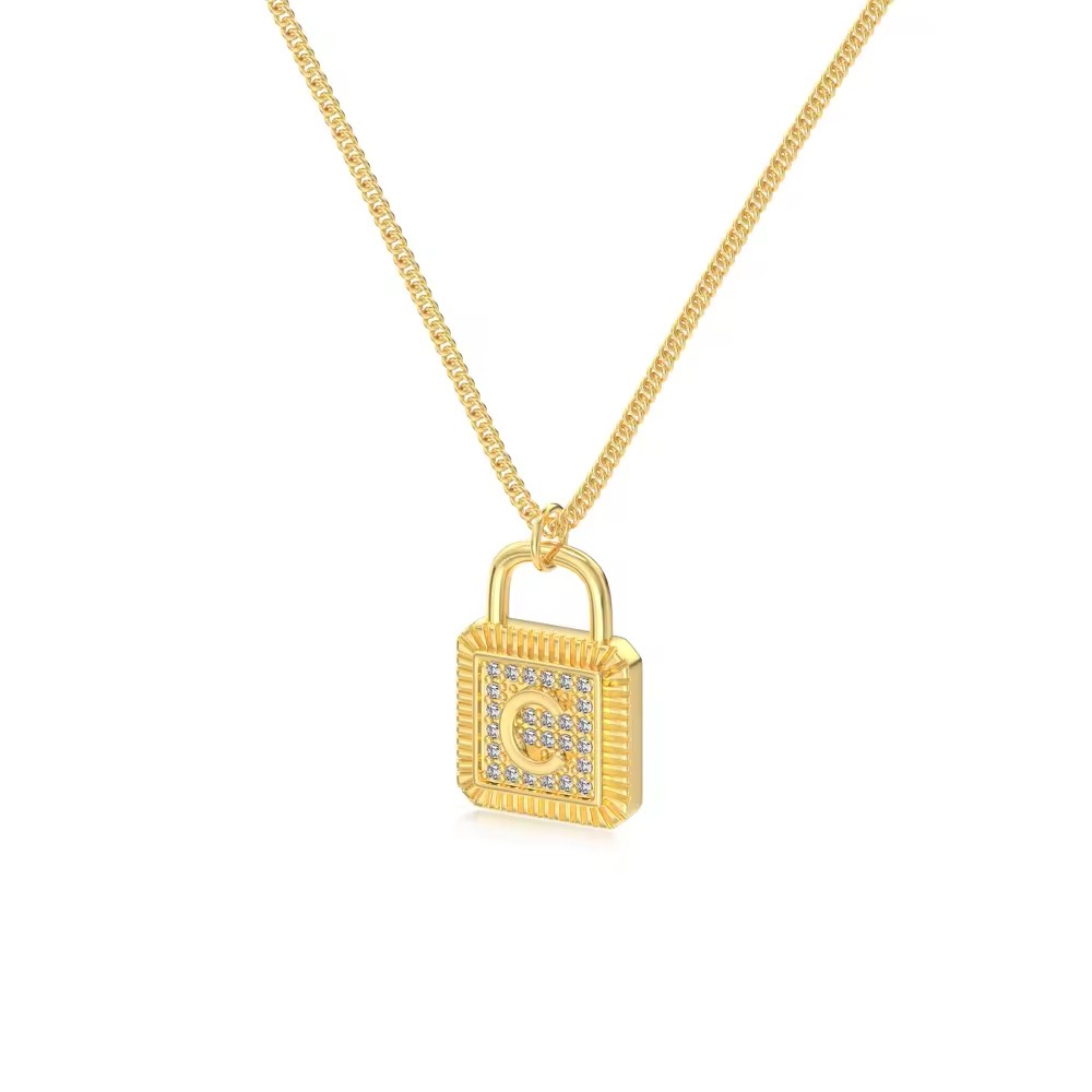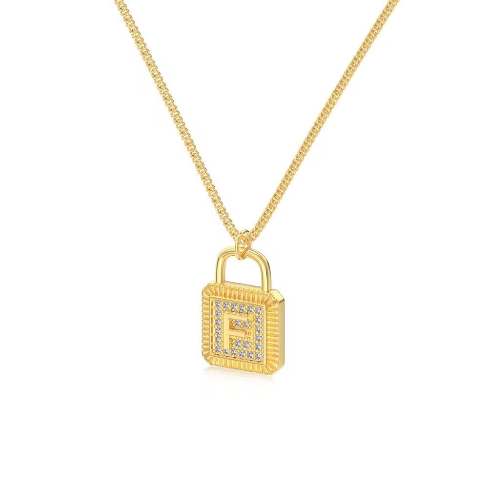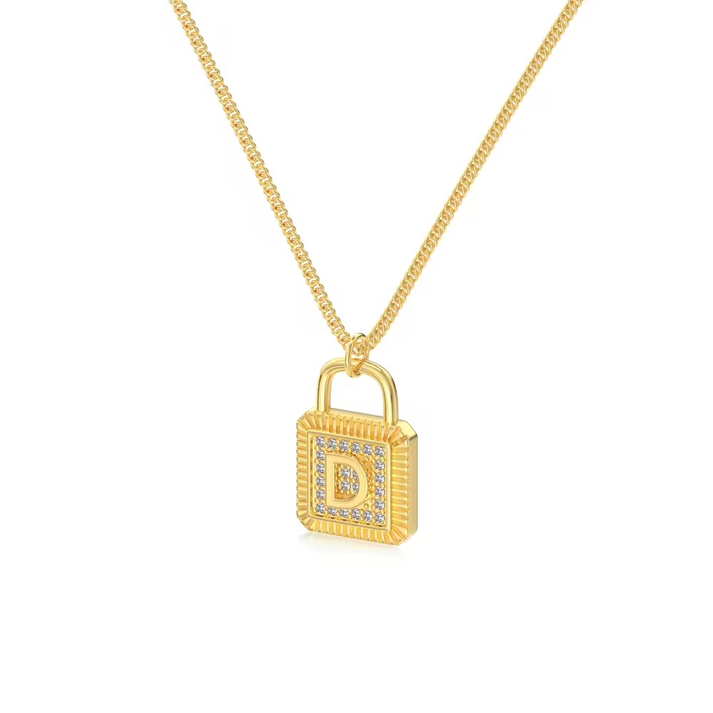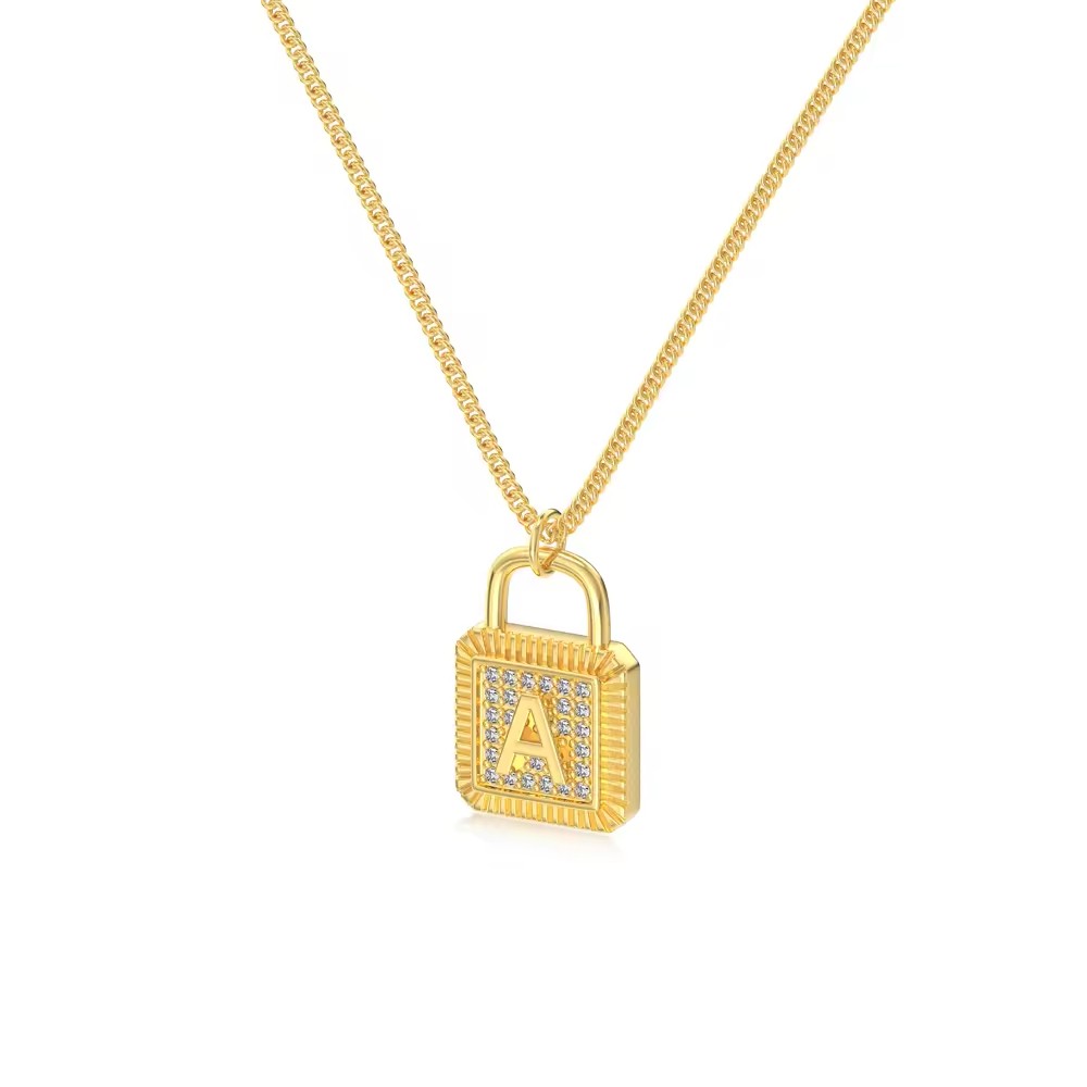Dylam Wholesale 925 Sterling Silver High End Fine Jewelry Women Wedding Engagement 26 Letter Lock Pendant Necklace