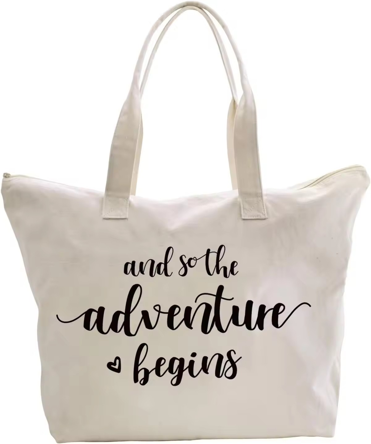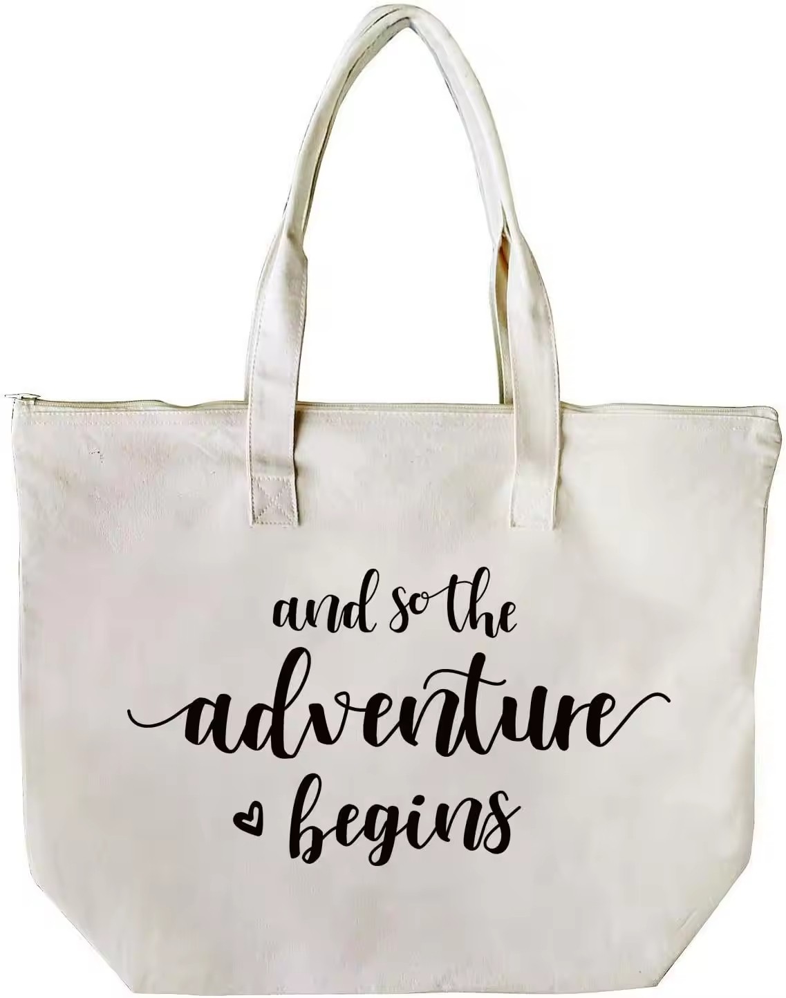 Factory Customized Letter Zipper Single Shoulder Canvas Bag Large Cotton Grocery Shopping Canvas Tote Bag with Logo