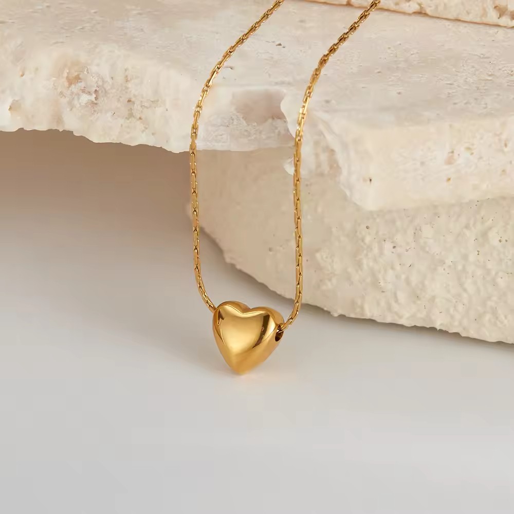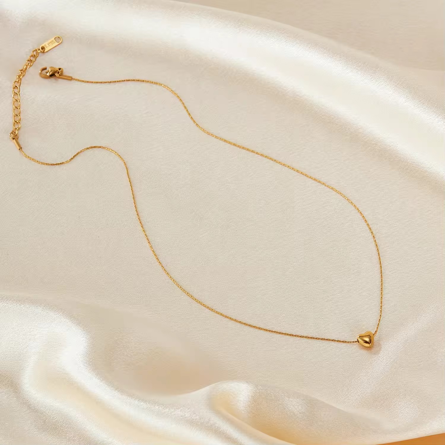 Fashion 18K Gold Chunky Heart Necklace Women Lover Jewelry Best Friend Stainless Steel Necklace Extender Chain