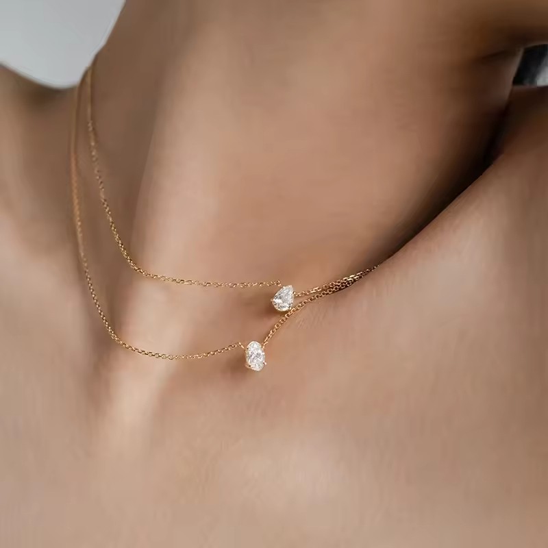 High End Gold PVD Dainty Waterdrop & Oval Zirconia Stainless Steel Pendant Hypoallergenic Waterproof Necklace Fashion Jewe
