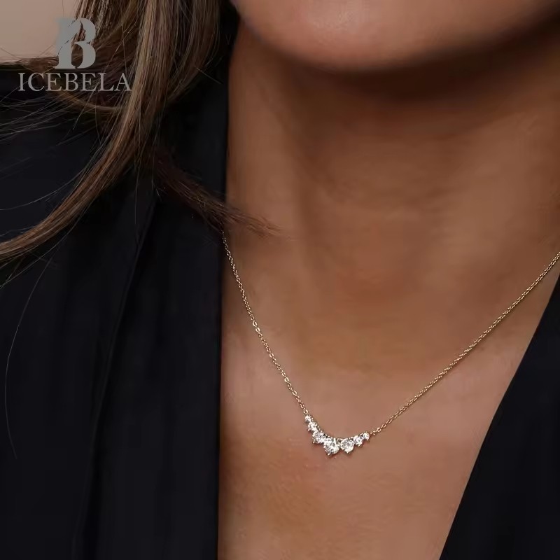ICEBELA Fine Jewelry 925 Sterling Silver Luxury Temperament Elegant Zircon Curve Pendant Necklaces for Women