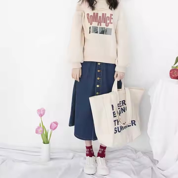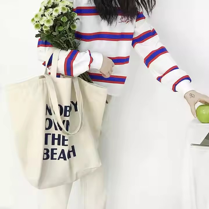 Low MOQ Customized Large Natural Color Beige Tote Cotton Canvas 12 OZ Shopping Women's Tote Bag With Custom Printed Logo