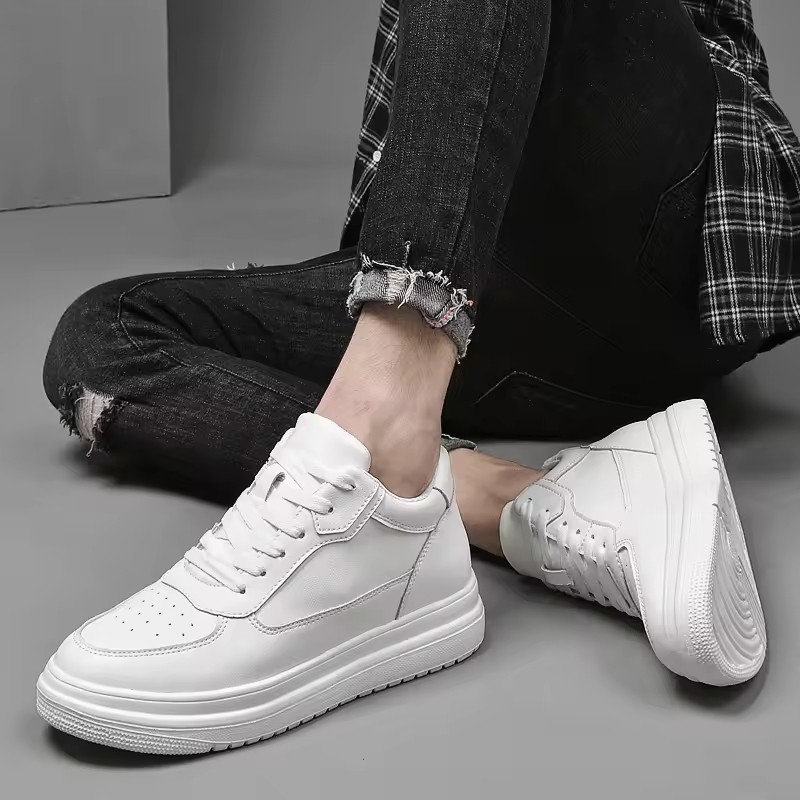 Men's Women's Casual Sports Shoes Low-Top Board Skateboard Shoes Invisible Inner Height Increase Spring Autumn White Shoe