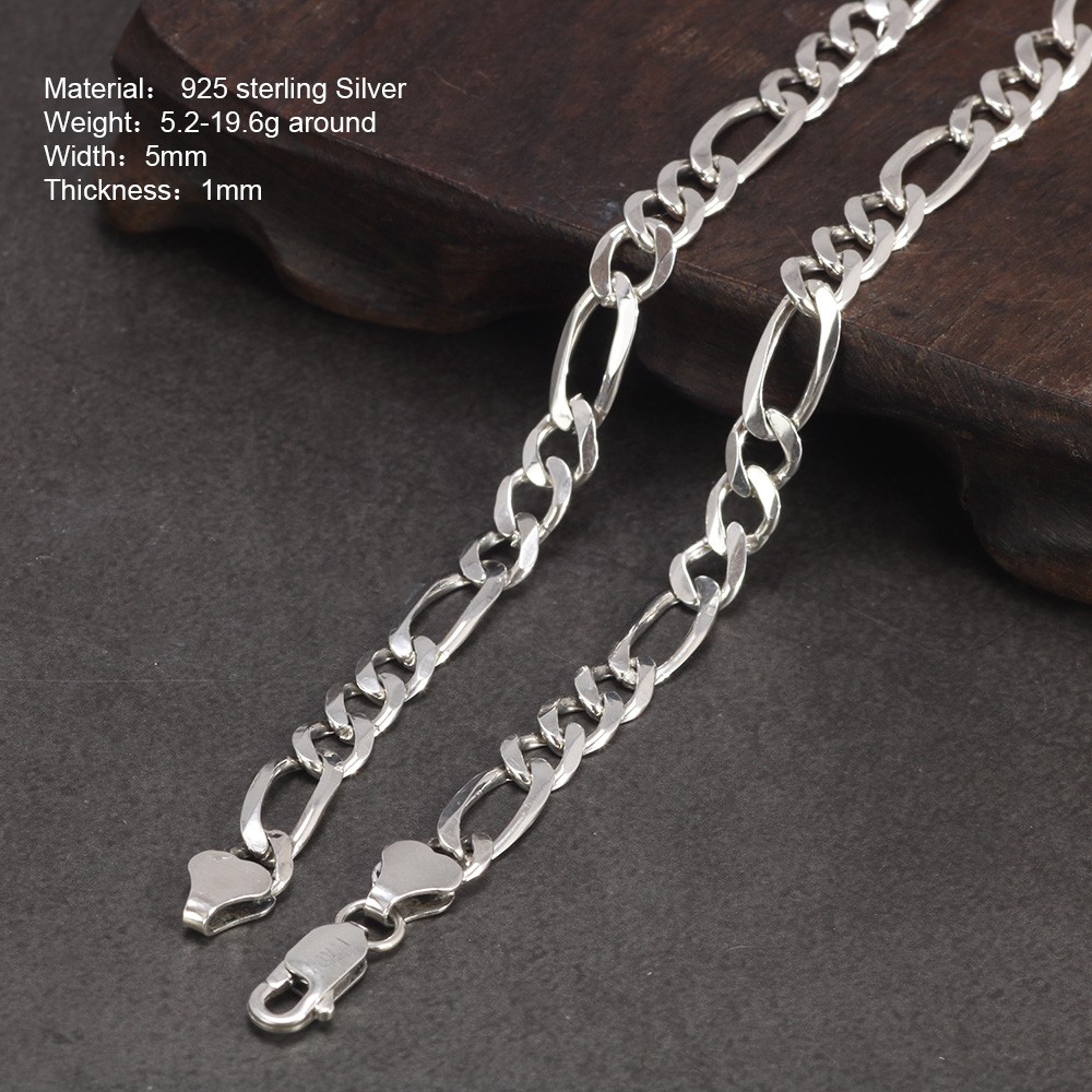 New Arrival 925 Sterling Silver Italian 5mm Diamond-Cut Figaro Chain Bracelet Necklace For Women Men Classic Handmade Jewelry