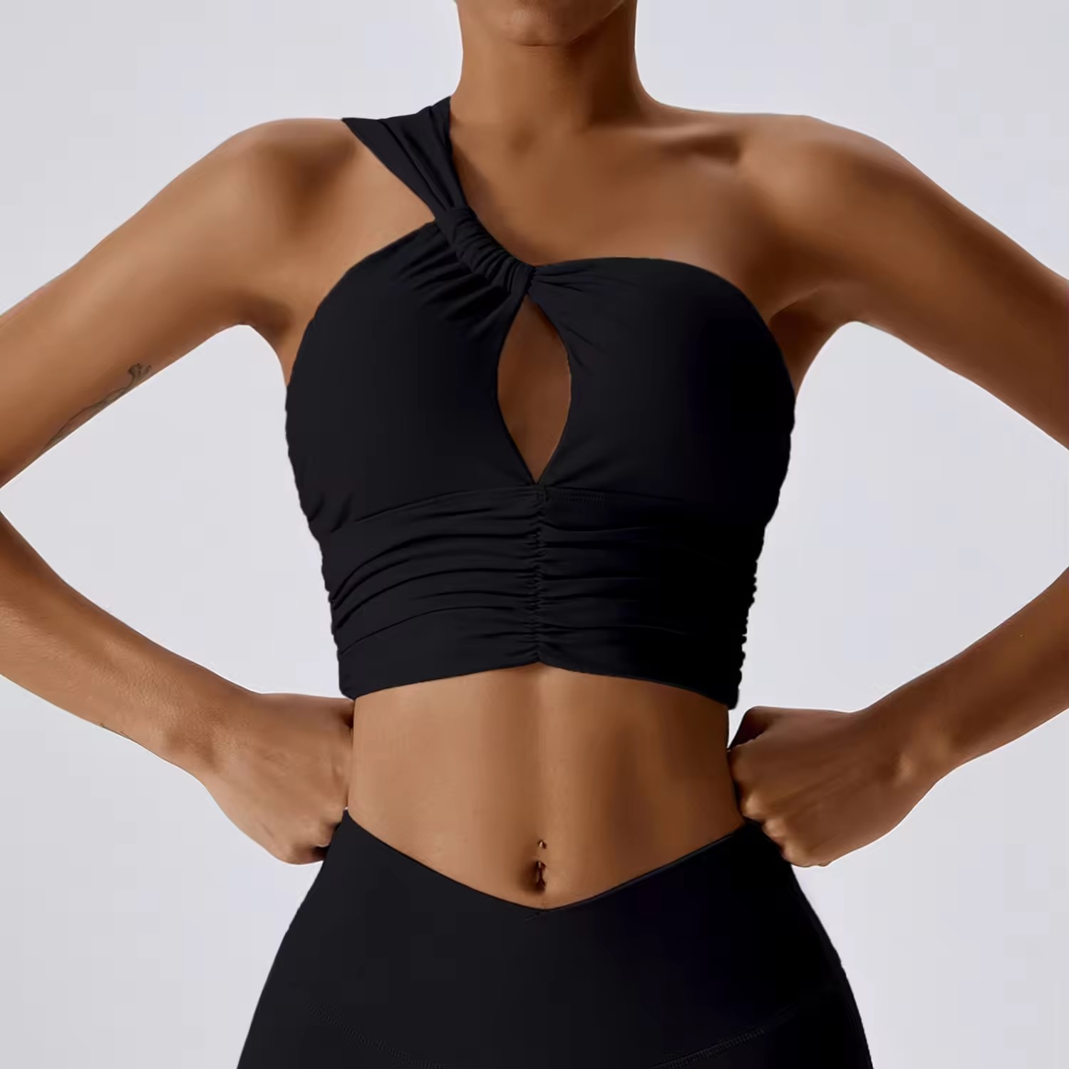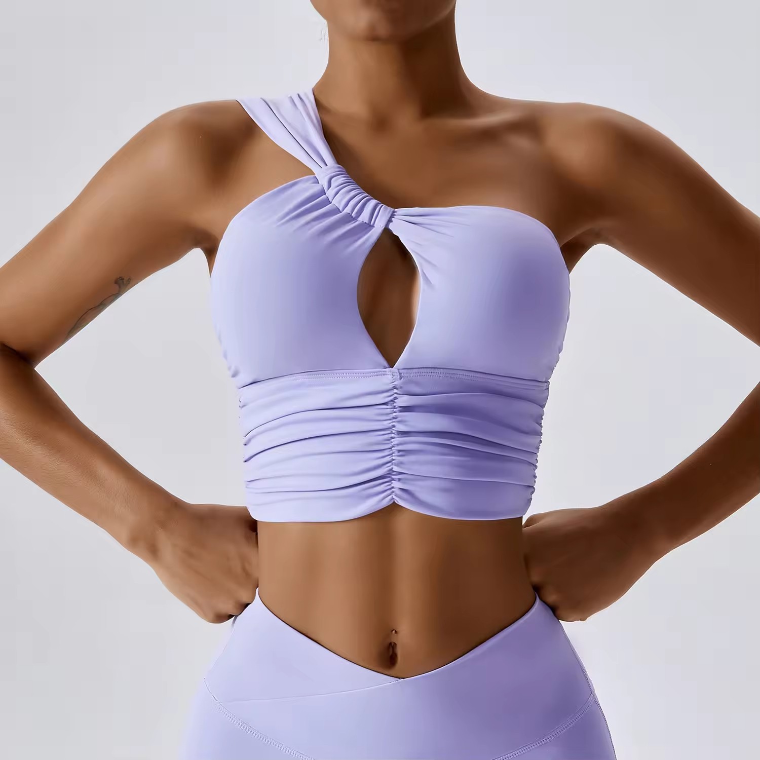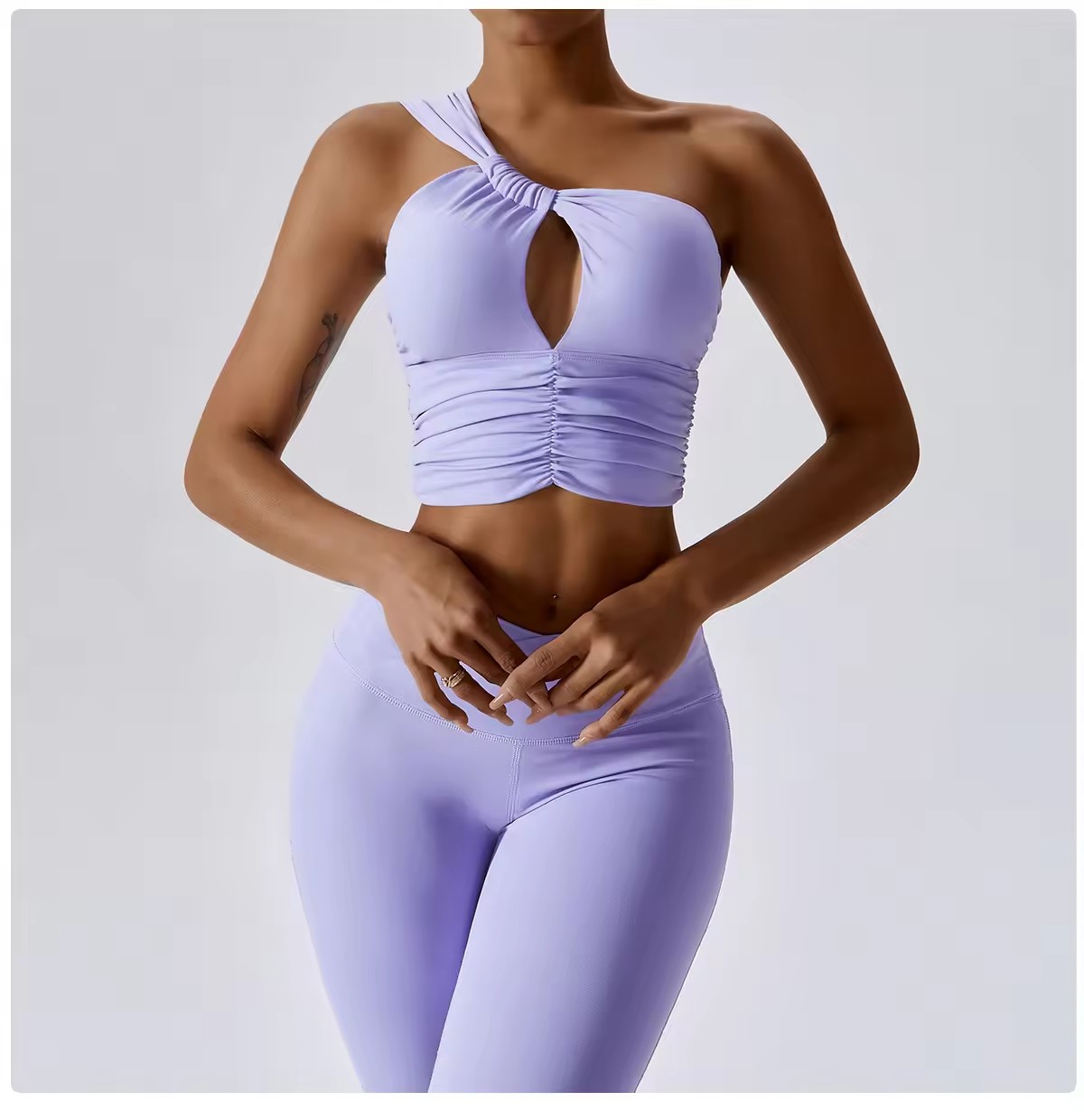 Women's Sexy One-Shoulder Sports Bra and V-Cross High Waist Leggings Active Workout Gym Fitness Athletic Outfit Yoga Suit Set