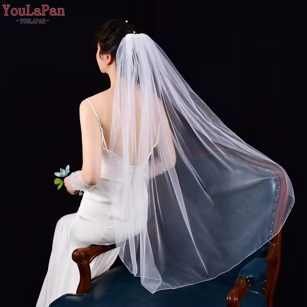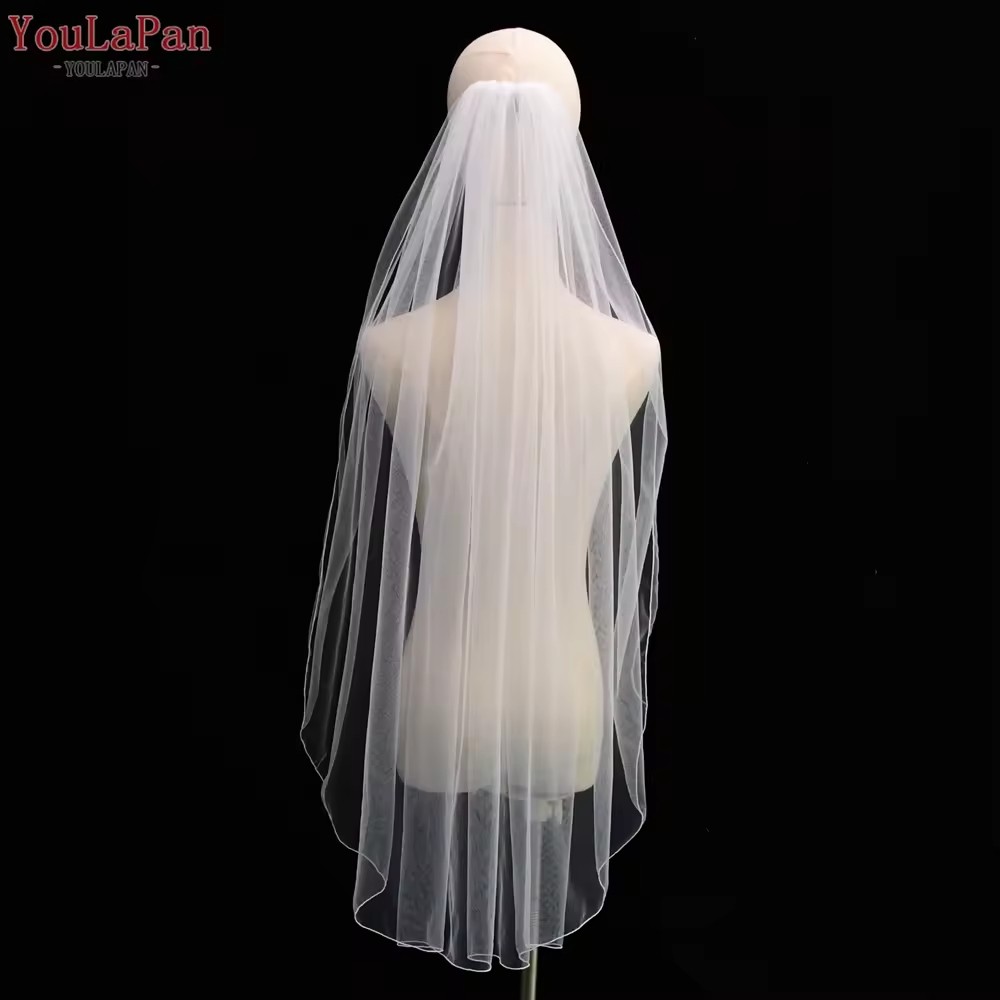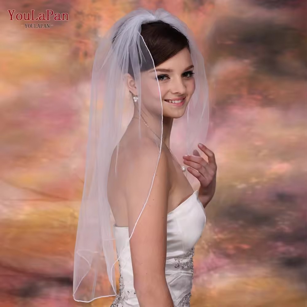 YouLaPan V14 Customizable Bridal Veil Wholesale Cheap Plain Yarn Binding Single Layer Party Wedding Proposal Engagement Veil