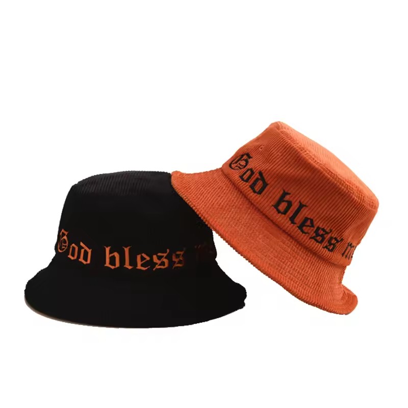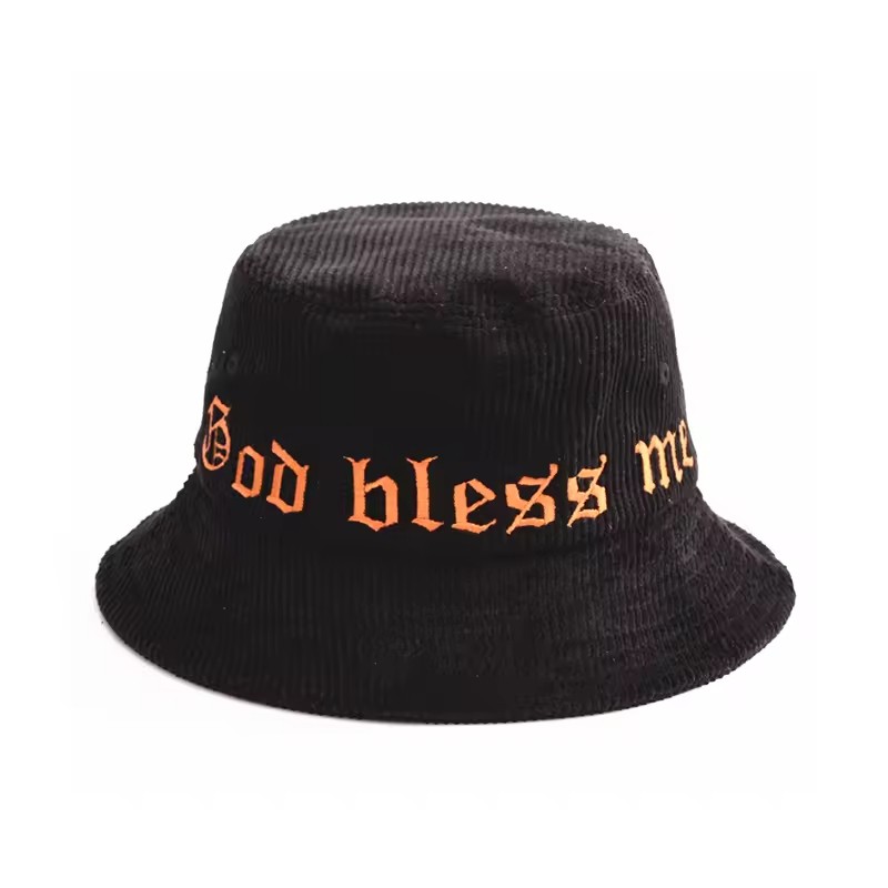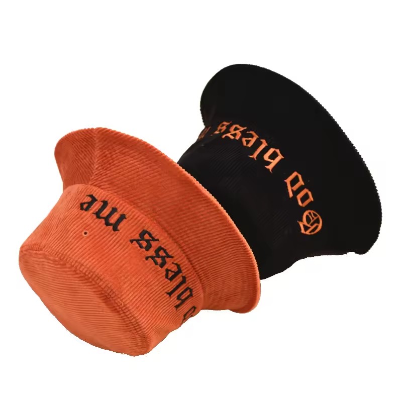 YZ Caps OEM High Quality Custom Embroidery Logo Unisex Casual Plain Wide Brim Corduroy Bucket Hat Fisherman Cap